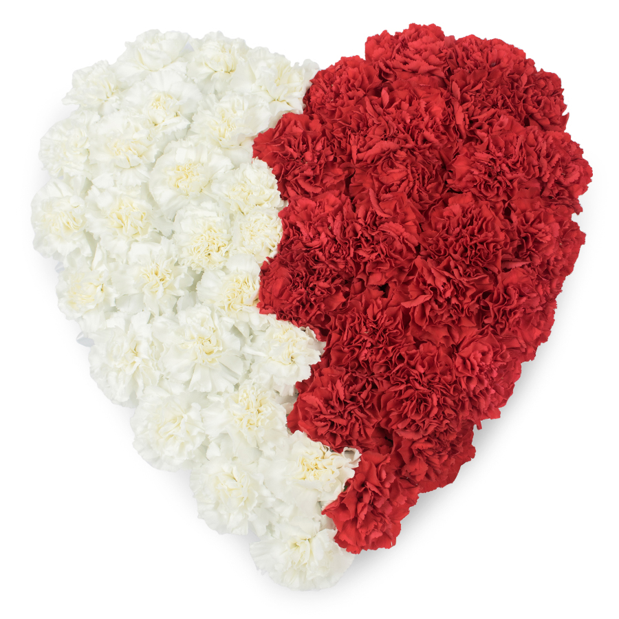 Experience the enchanting allure of our Heartfelt Mixed Carnations Bouquet designed by Handy Flowers. This dazzling arrangement features an artful mix of white and red carnations arranged in a captivating heart shape. Each flower is individually handpicked to ensure a product of unparalleled freshness and elegance.